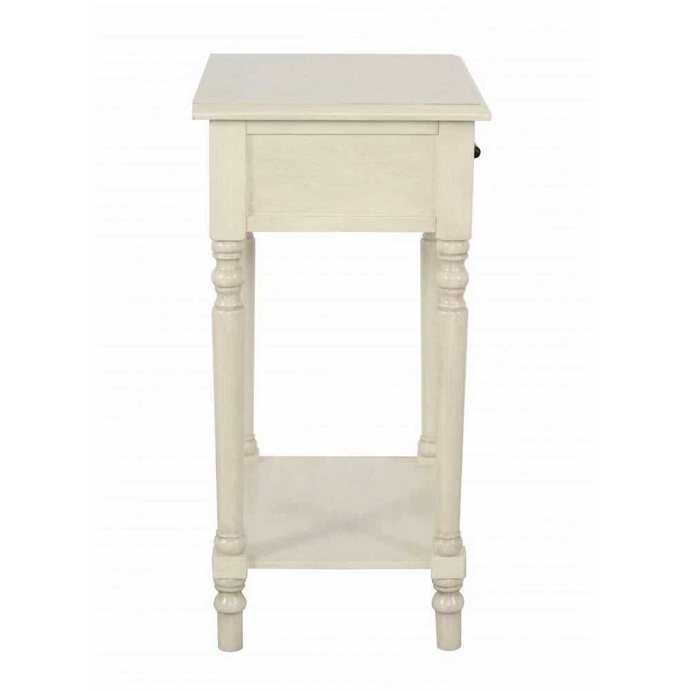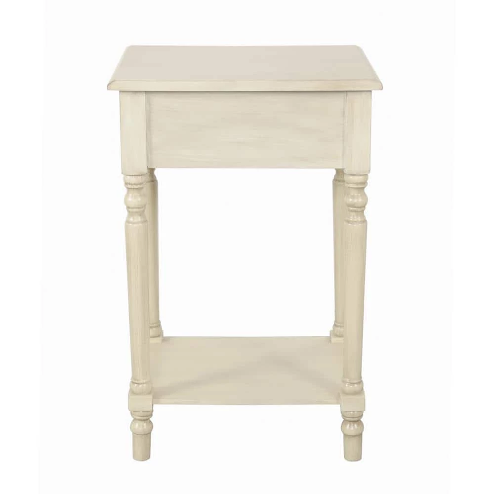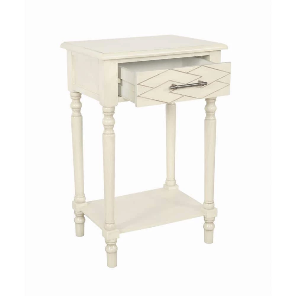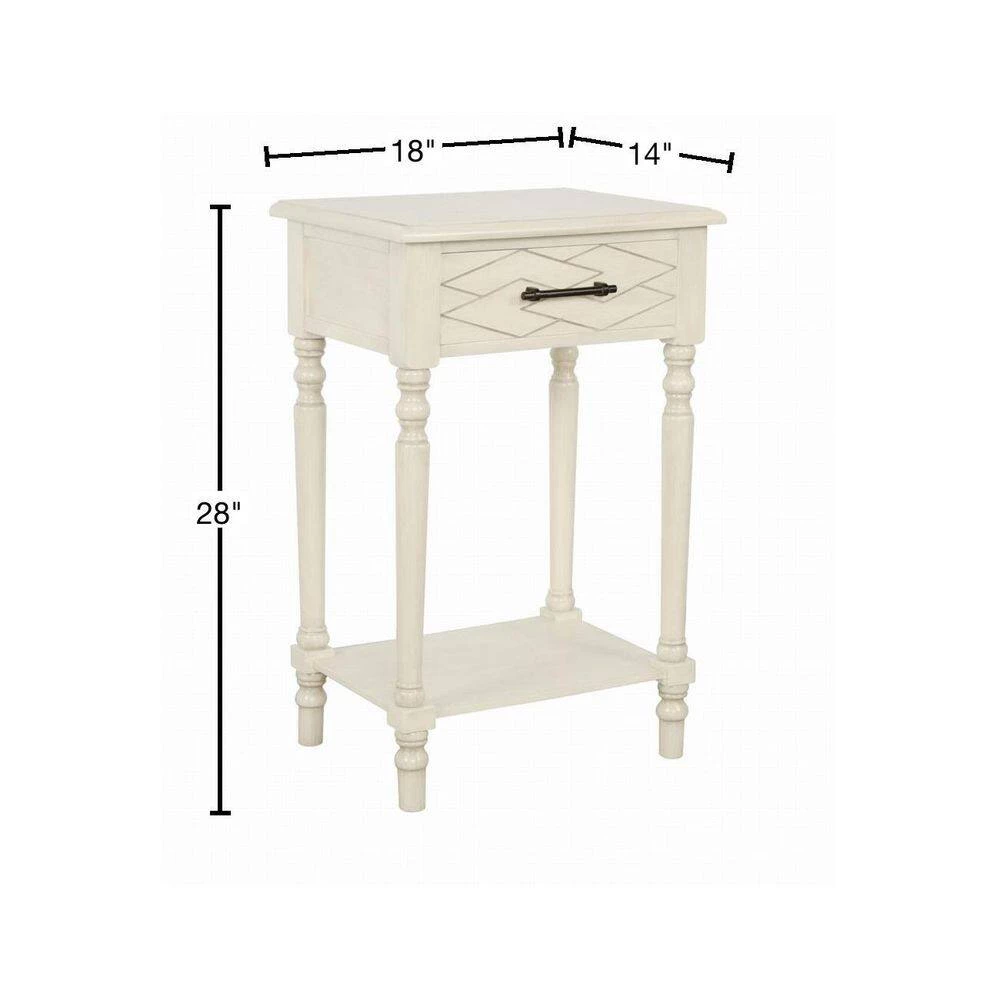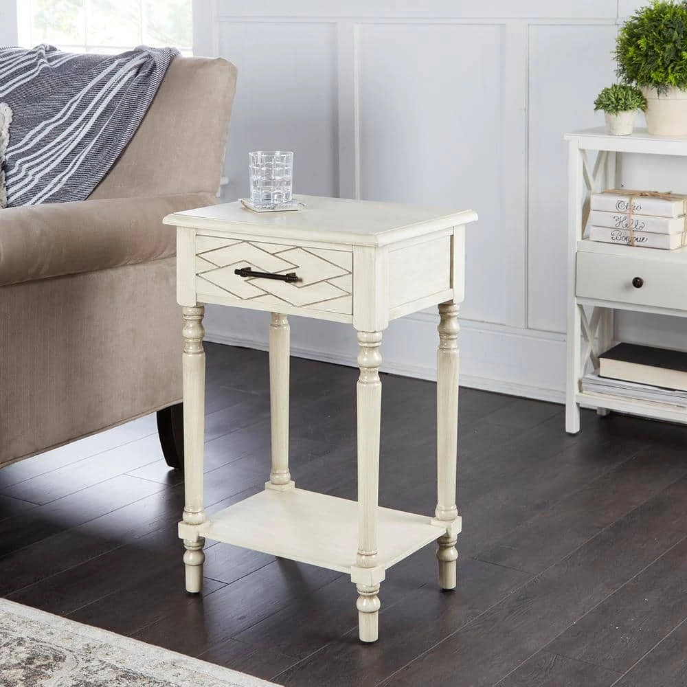 Pure and simple, the Anthony One Drawer Side Table plays a huge role in creating balance in your decor. With its etched drawer front and neutral finish, this wood side table exudes peace and pleasure with functionality. One small storage drawer keeps your personal items safe and tucked away for future use and the bottom shelf makes display of decor accessories, photos, books and much more extreme joy with an easy 180 degree view. Place on either end of your sofa to hold accent lamps or in your entryway to play host to a potted plant. Constructed of MDF and veneer and measures 18 W X 14 D X 28 H. Easy assembly.
