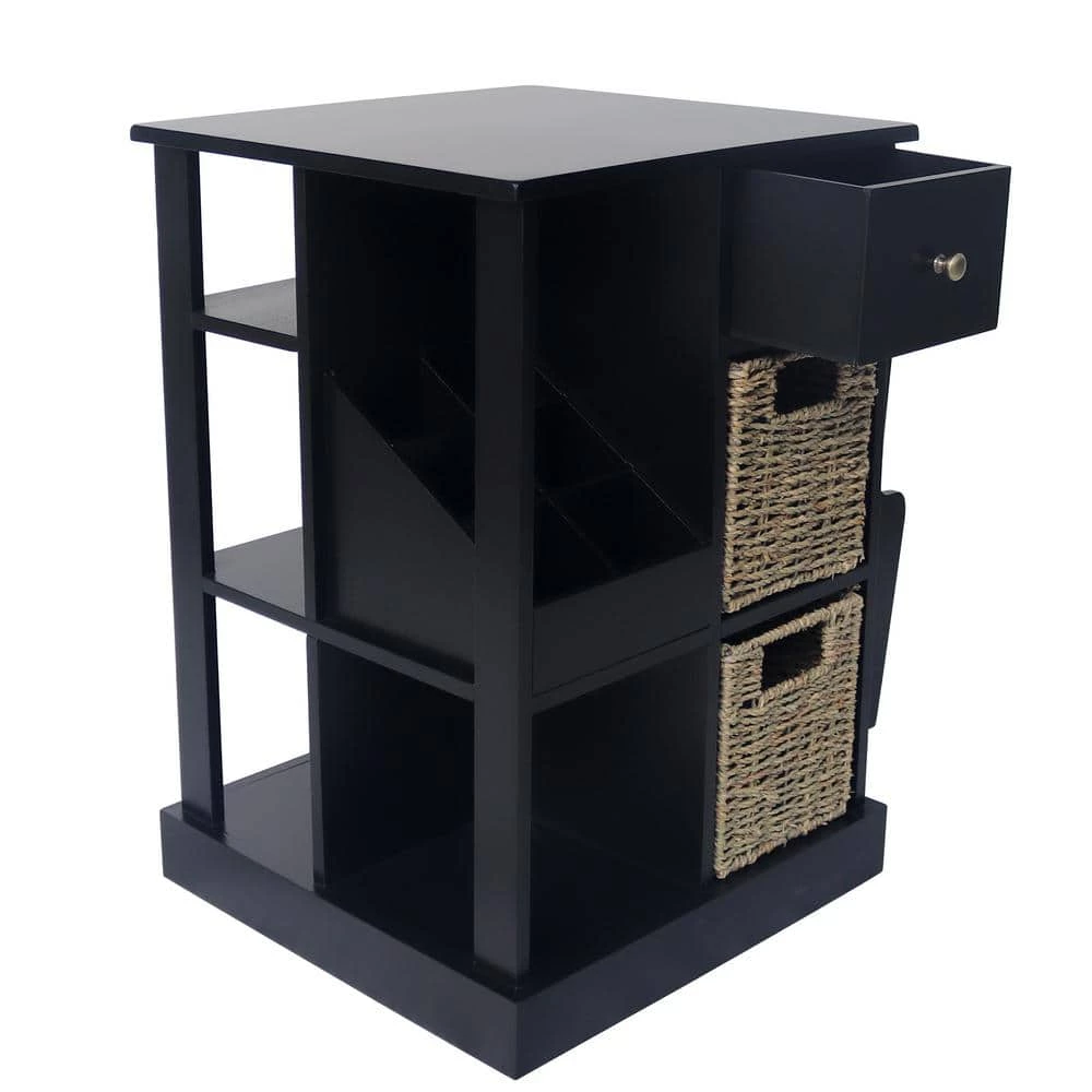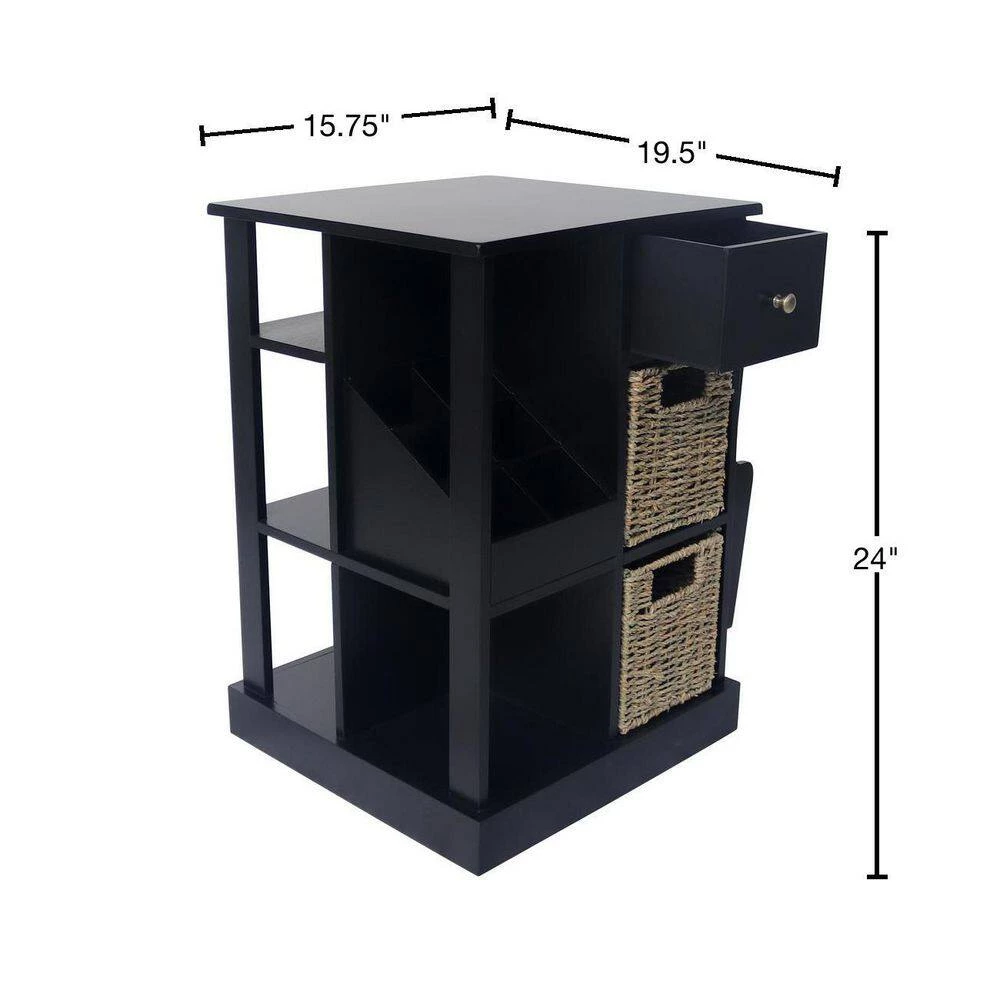 The Nora Accent Table Stand is a multi-function accent table geared to be the go-to storage solution for any home office, craft room or any modern working space. The rectangular table offers a flat working surface on top with 360° of storage options beneath. This includes two side magazine racks, two rattan basket drawers, a standard pull-out drawer, standard shelves, and removeable multi-purpose organizer shelf. Maximize your home’s workspace without sacrificing floor space or style. Measures 24 in. H x 19.5 in. W x 15.75 in. D.