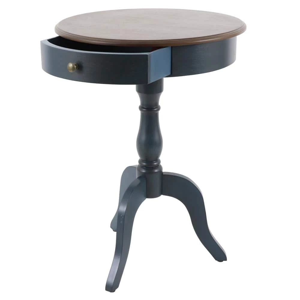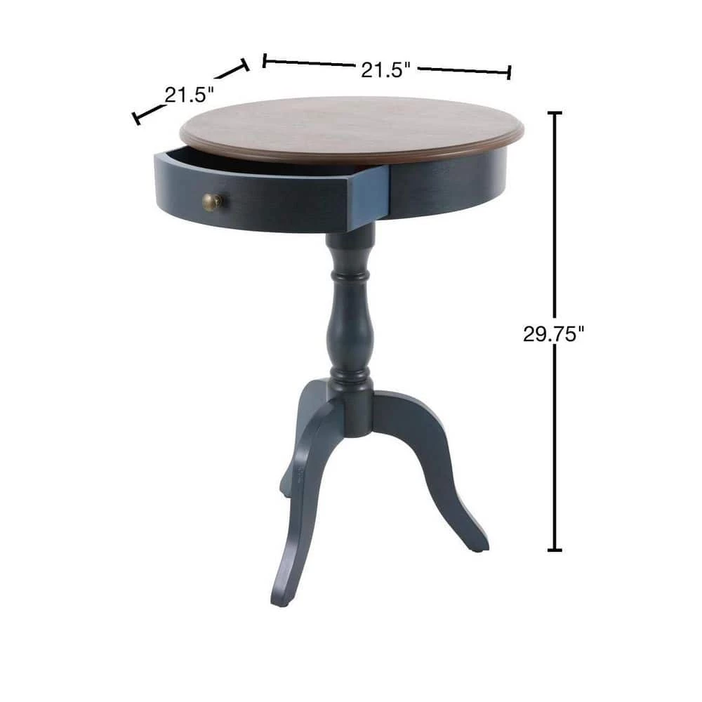 The traditionally designed Penny Pedestal Table is the perfect round accent table to fill the blank space in your living room or holding a vase of bright blooms in the entry way, cheerfully greeting guests. The classic silhouette adds an element of sophistication to your space, while the modern finish adds a refreshing twist, creating a transitional look that will last for years to come. A single storage drawer allows you to house belongings, keeping your home organized and clutter free. Solid and MDF construction for durability. Easy to assemble. Table measures 21.5 in. x 21.5 in. x 29.75 in.