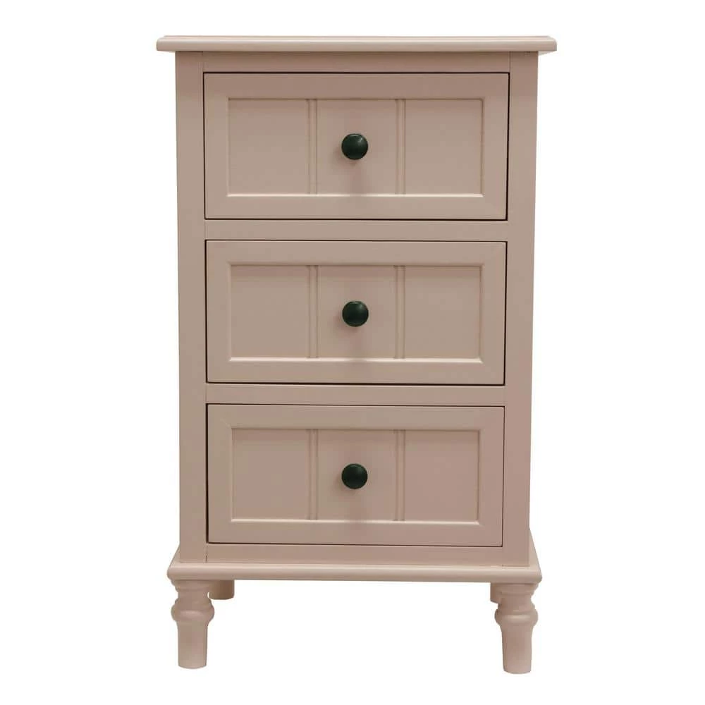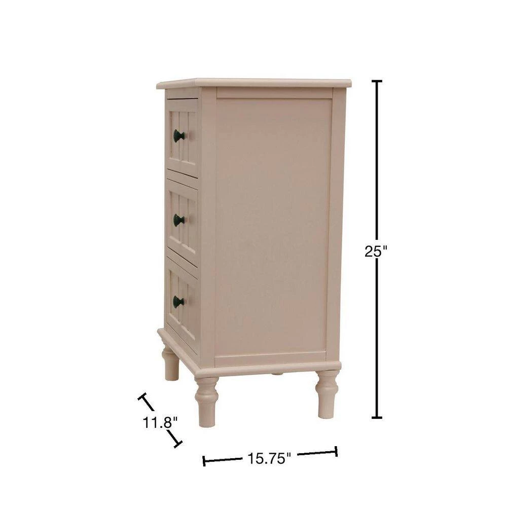Design and functionality meet in harmony with the Three Drawer Accent Table. This accent chest can be used to as an end table next to your sofa to showcase a table lamp or in an office to store supplies. It has a timeless l finish that could be transitional for any decor. Constructed of sturdy solids and MDF. Table measures 15.75 in. x 11.8 in. x 25 in.