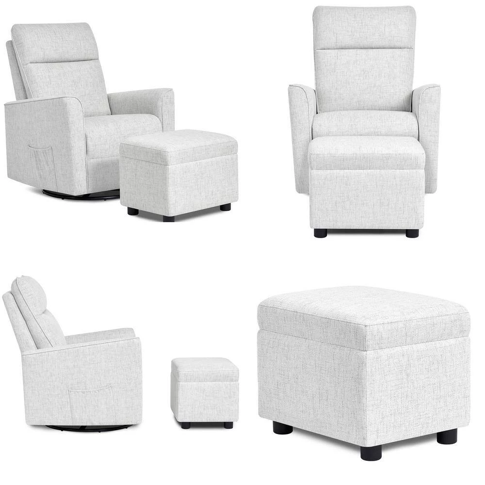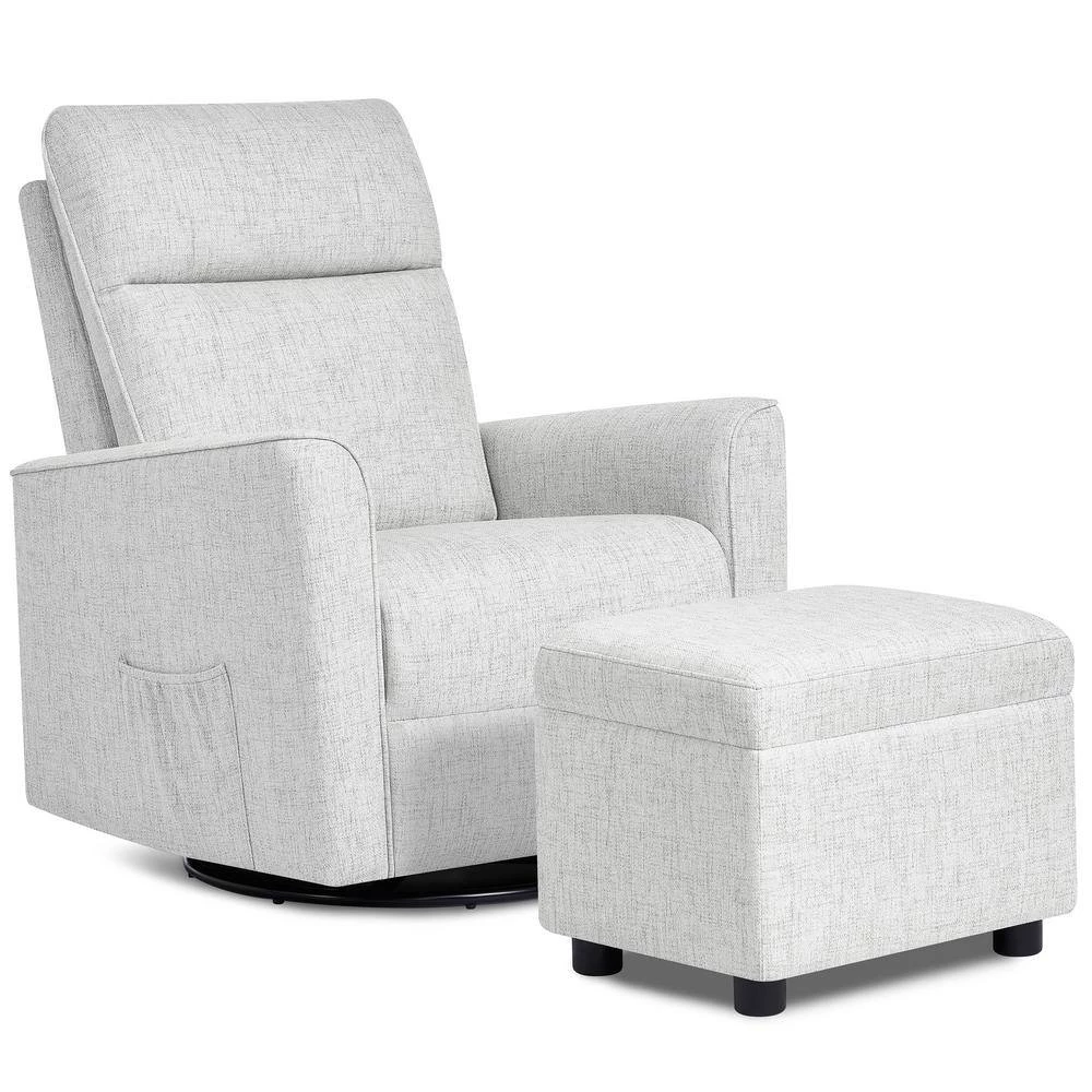 - Ottoman included the Evolur Aria glider comes with a cushy ottoman for you to sit back and kick your feet up on