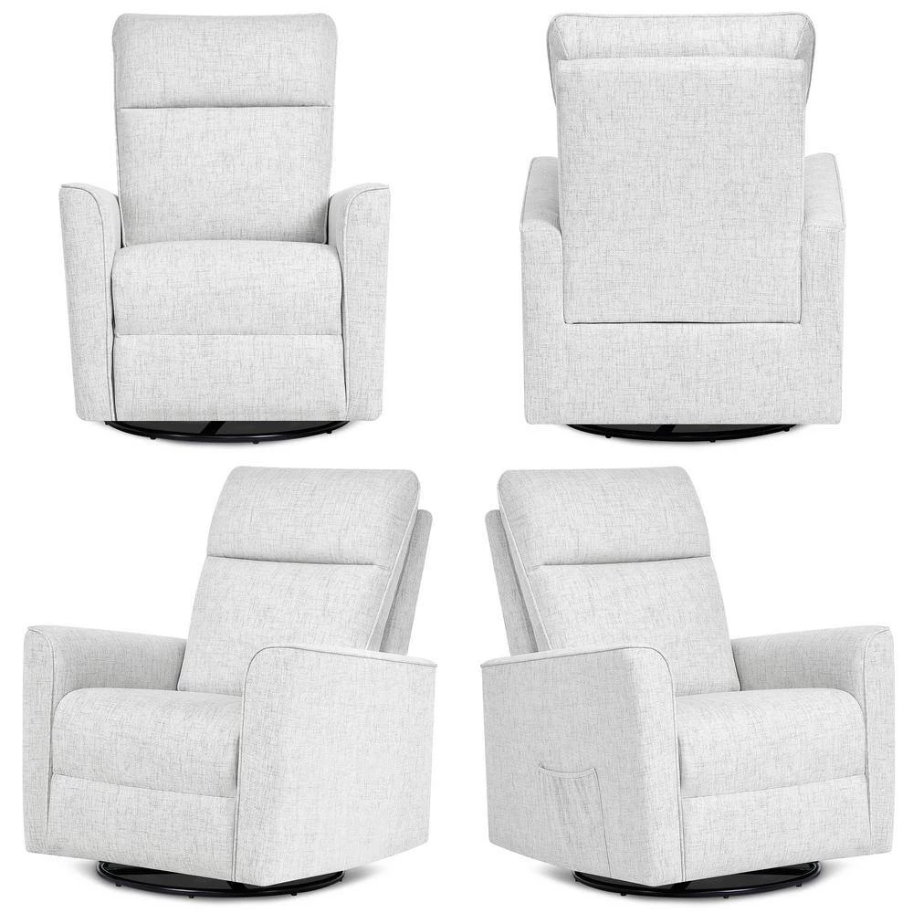 Read, snuggle and sing to your bundle of joy in your favorite spot. Bring home the Evolur Aria Glider built for your ease and comfort. With smooth gliding, rocking and 360° swivel movements, feeding and bonding with your baby is a stress-free, wholesome experience. Keeping in mind your convenience, the Evolur Aria Glider is made of durable fabric that’s easy to clean. Made with solid wood and metal frame, this ergonomically designed glider offers a firm and sturdy support for your waist. What’s more, the Evolur Aria Glider comes with a cushy Ottoman, so sit back and kick up your feet. Choose from two classy finishes – Fog and Earl Grey. weight capacity 240 lbs.
