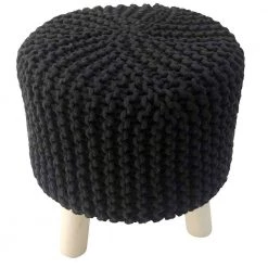 Deidra 17 in. Black Backless Wood Accent Stool with Upholstered Seat by Decor Therapy