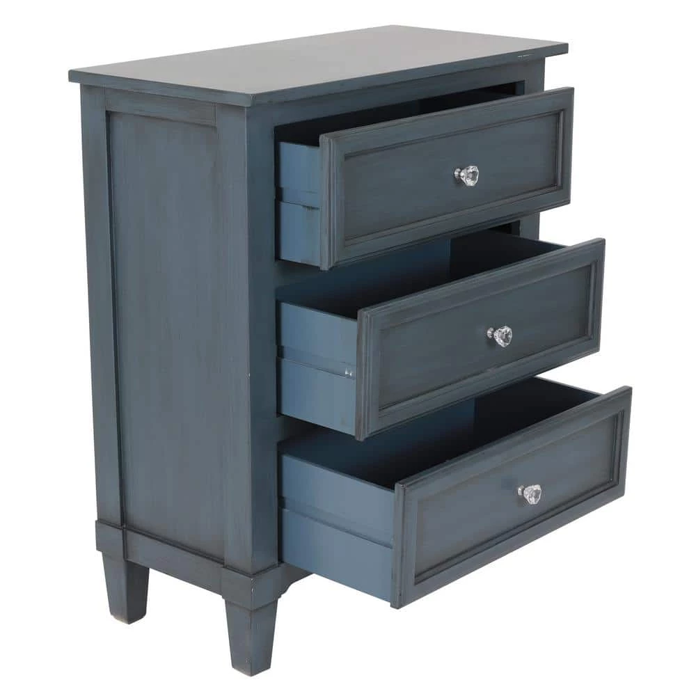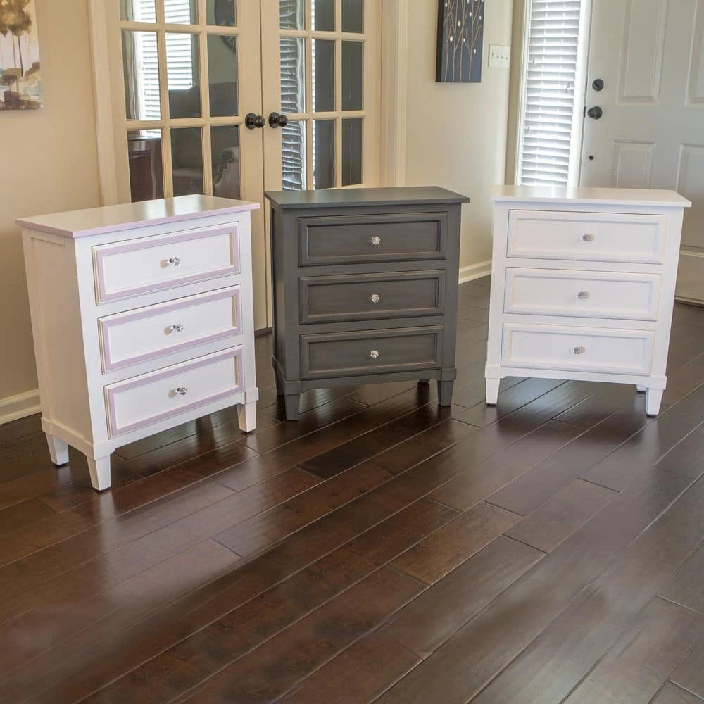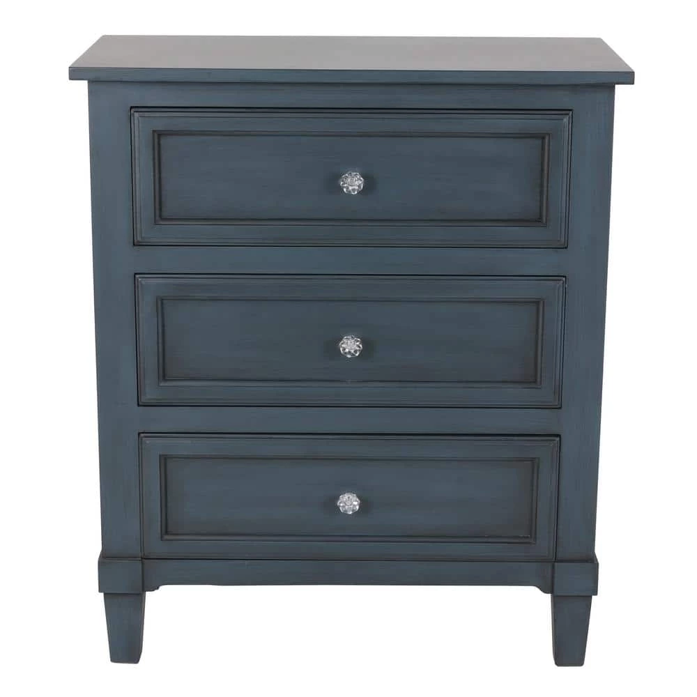 Instantly add character to an entryway or lend a charming touch to the living room with the charismatic Beckett side table. Made from wood, this delightful design features three large drawers, offering ample storage. The crystal inspired round knob adds a glam-chic look that will elevate the look of your space. A versatile piece, the Beckett accent table can be used as a living room side table. Available in a range of finishes, ranging from neutral to a pop of color. Constructed of MDF. Measures 24 in. x 14 in. x 28 in.