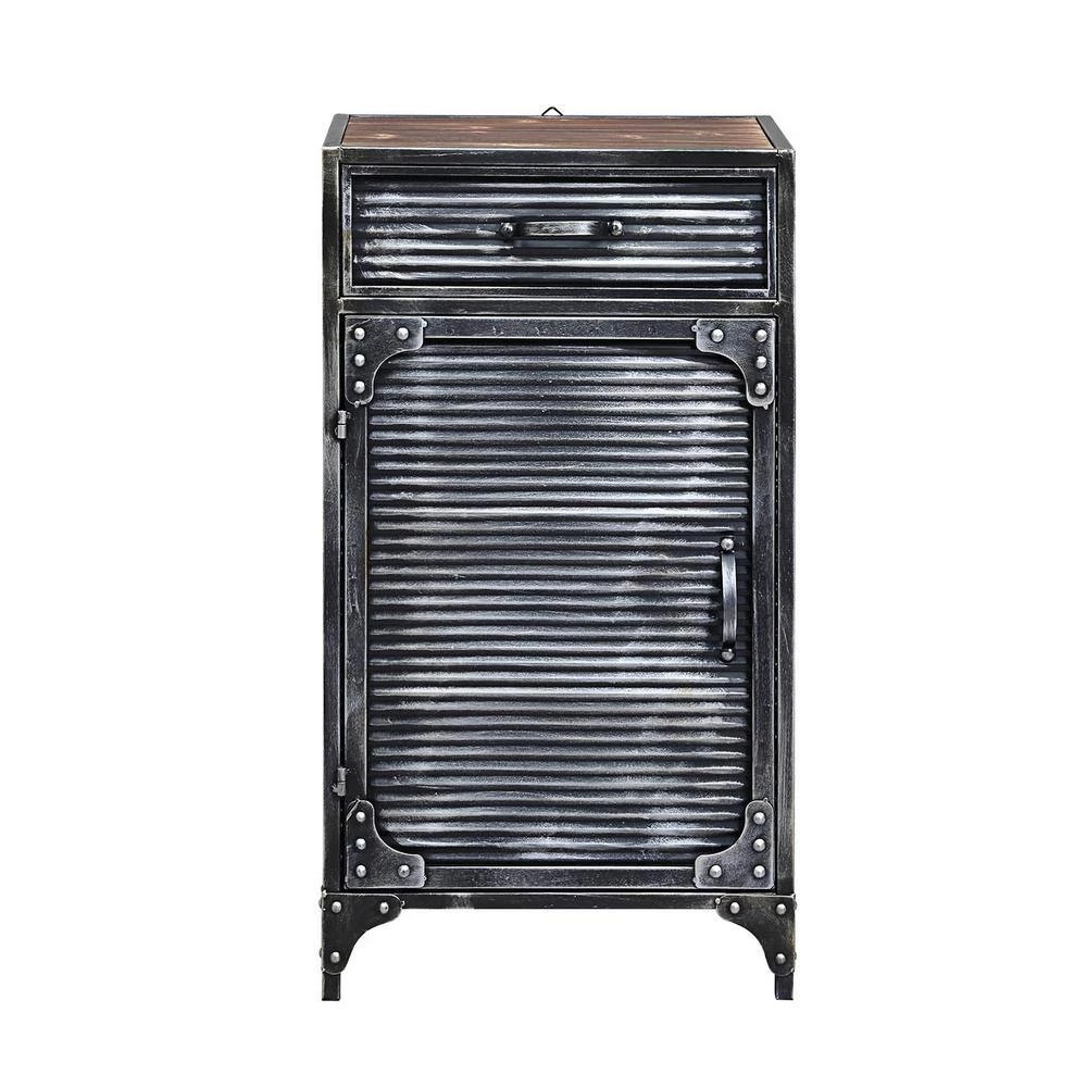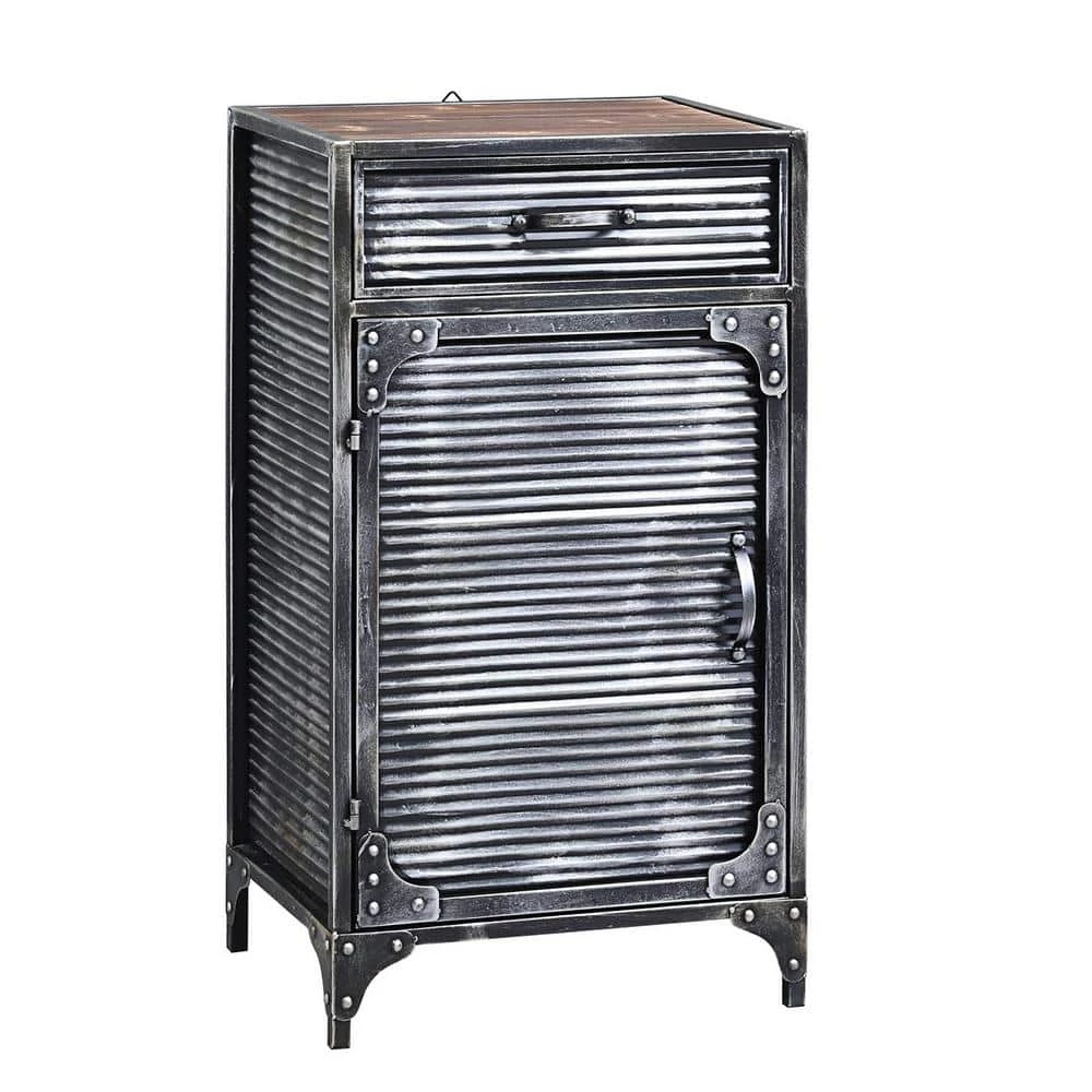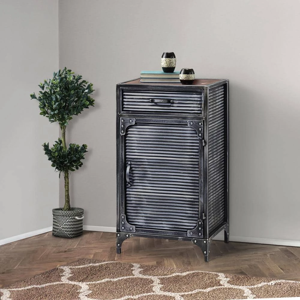 This urban designed Calico Collection Storage Cabinet, is great storage for any room in the house. This storage item is a uniquely designed industrial style cabinet with a fluted door which opens on pivot hinges and closes with a magnetic catch and 1-drawer. The large storage area is great for all of your storage needs. The unit is quite versatile and would make a great storage and statement piece in any room. Goes great with the matching Calico Collection items. Partial assembly required. Clean with a dry non-abrasive cloth.