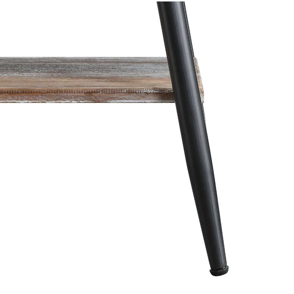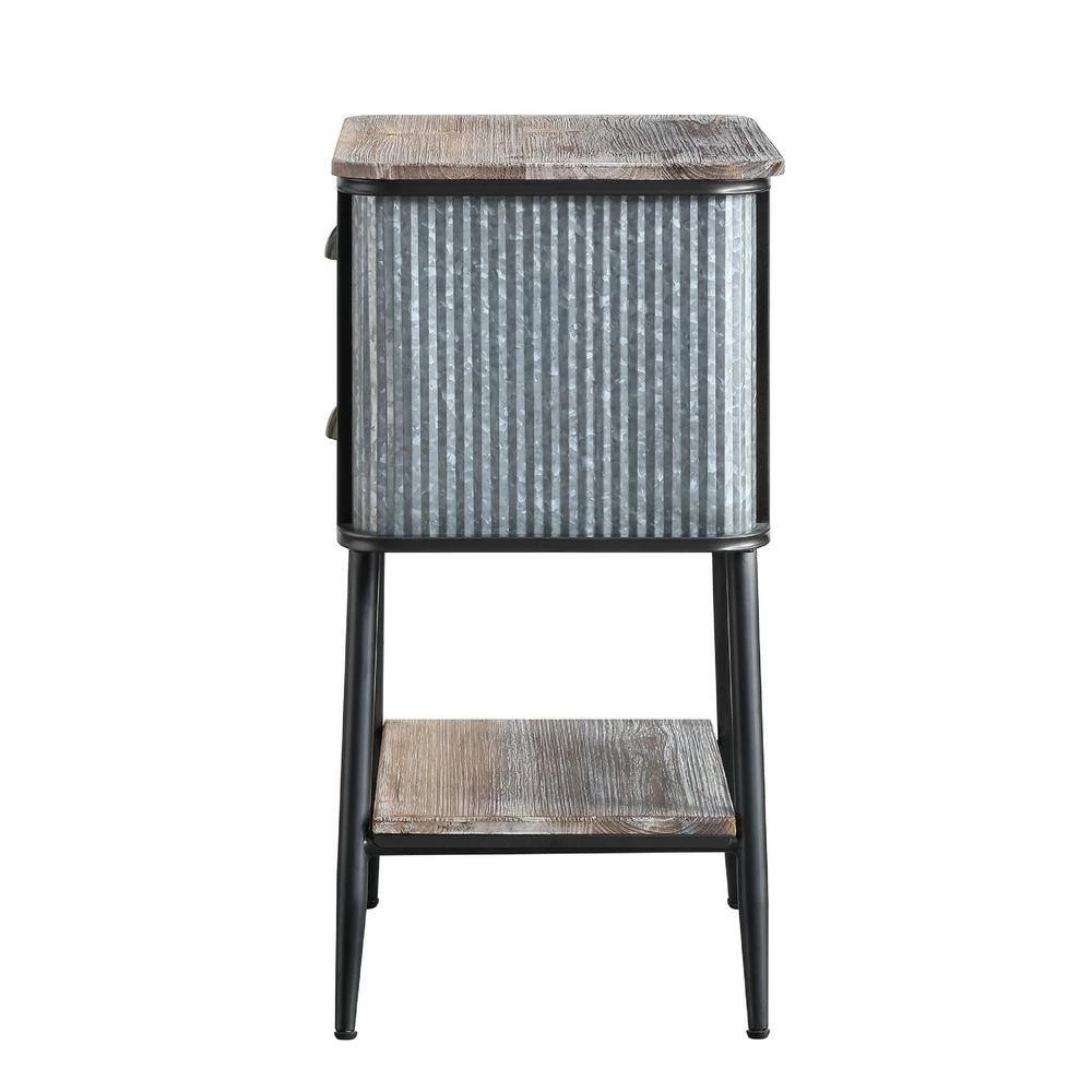 The Dena Collection 2-Drawer Side Table has washed Fir wood with grey and black metal adds the much needed industrial urban character that you crave in your home. The 2-wooden drawer fronts with metal frames and decorative metal pull handle. The rounded edge solid wood top compliments the gray and black metal legs along with the additional shelf at the bottom complete the one of a kind look. Clean with dry non-abrasive cloth. Min Assembly required.