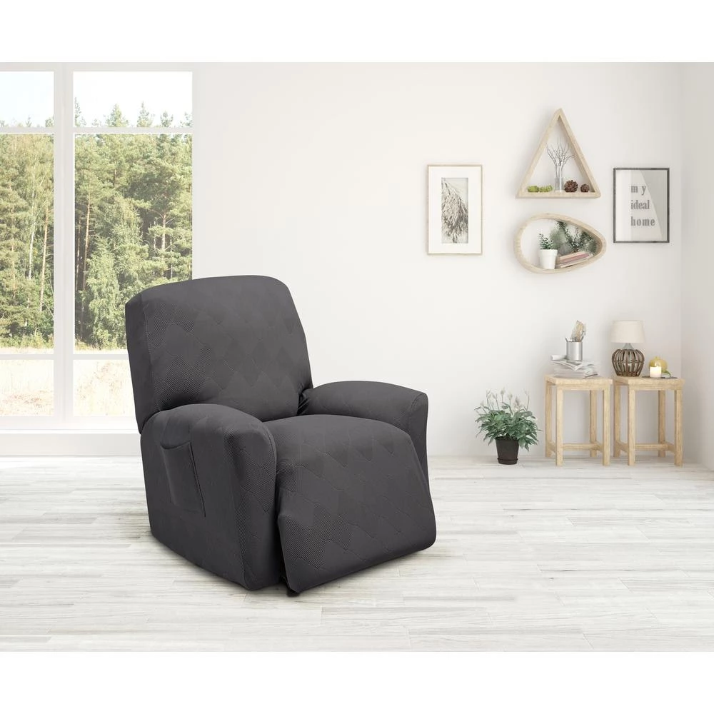 Stretch Sensations Optic Stretch Slipcover. Wavy diamond design. Stretch slipcovers are the perfect way to renew, restyle and refresh your furniture. On and off in a flash. 5-minute instant makeover. More economical than reupholstering. Quick room transformation. See a great upscale furniture slipcover with a softly textured wavy diamond design, its polyester/spandex blend material fit your furnishings while keeping them neat and elegant. Fits most recliners up to 82 circumference (around back of recliner).