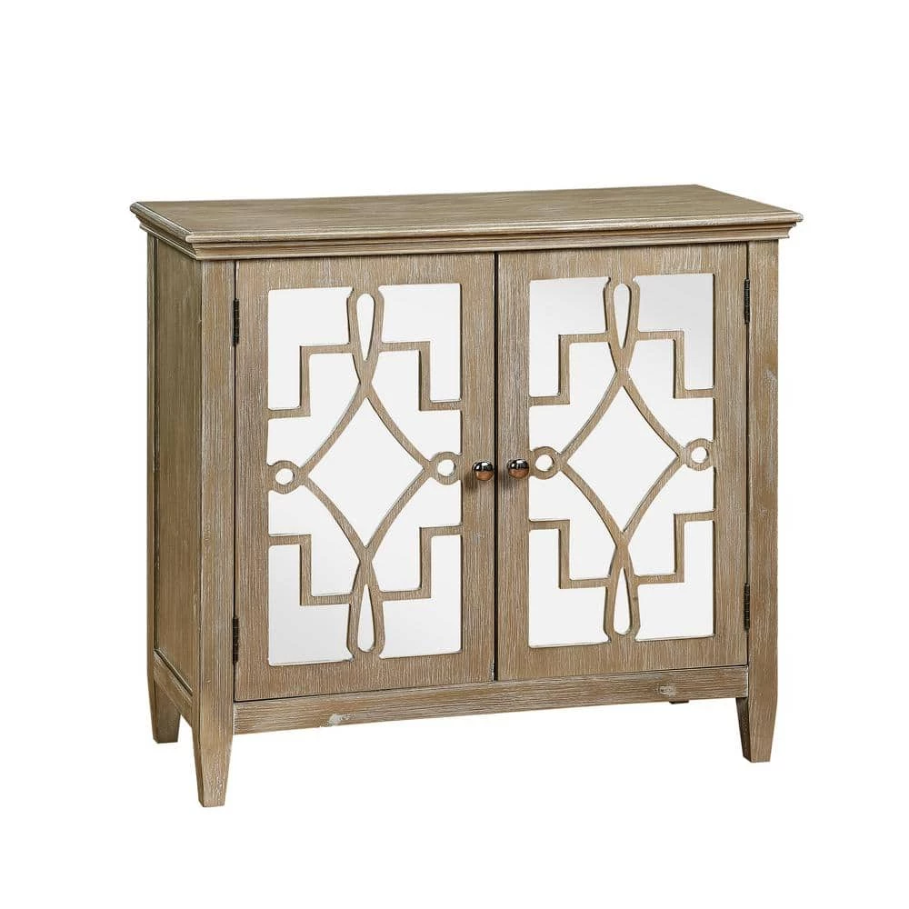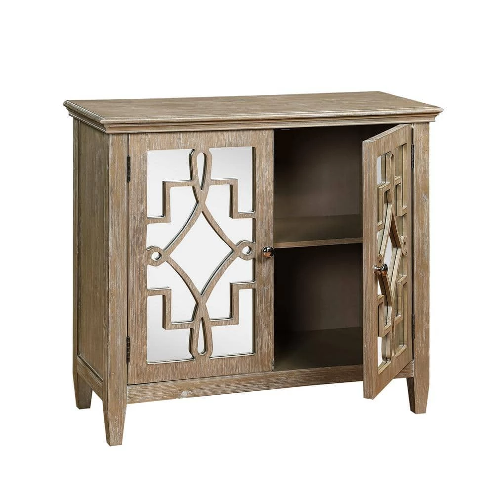 The Jasmine Accent Chest with Mirrored Doors is a great way to add a little glamour into any space where storage is needed. The overlay on top of the 2-mirrored doors allows for the storage space to be hidden with style. This item has a decorative silhouette starting with the thick shaped top all the way down to the tapered legs. This accent chest with an adjustable shelf is a perfect way to store or display photographs, jewelry, clothes and more. This unit is sure to get comments from your guests. Clean with dry non-abrasive cloth. This unit comes ready to ship with step by step instructions and the necessary hardware.