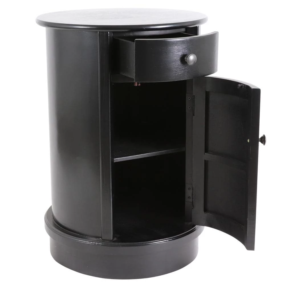 Place the Decor Therapy Keaton End Table at the end of your sofa to beautifully complete the design of your room. This end table has a classic style, which will add a touch of richness to your interior design. With storage space, it will provide an on-trend solution to your clutter. It features a wooden design, enhancing your living space with a timeless look and natural beauty. Featuring a durable design, this end table will remain in great condition for a long time. It features a black finish, introducing a neutral and subtle aesthetic into your room.