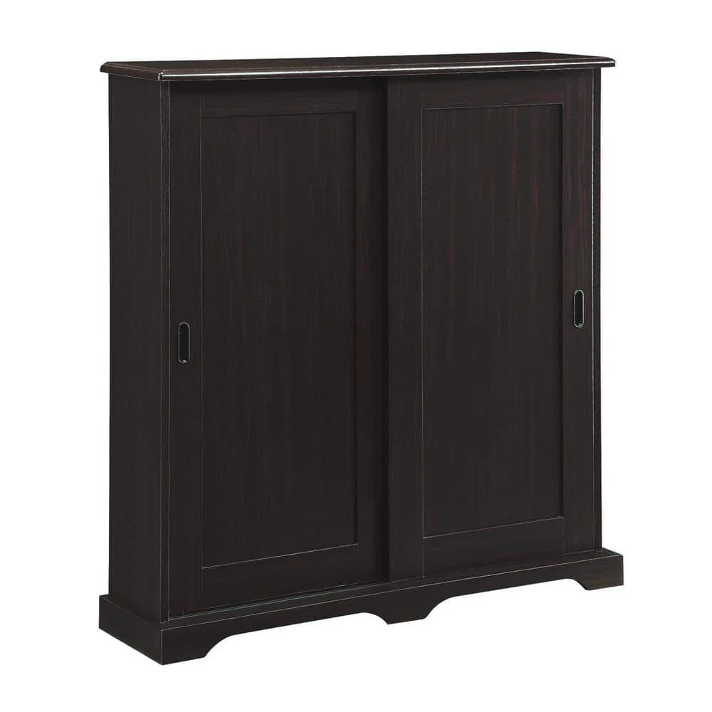The Media Storage Cabinet with Sliding Door is a beautiful piece for any room in your home. Holding anywhere from 250-500 CD’s or 175-350 DVD’s, depending on case sizing, the unit’s framed doors gently glide open to a rich black interior with 5-adjustable shelves on the inside. The top of the item is shaped and the bottom frame is sculpted on all three sides to give the unit a designer look. The doors come preassembled for easy assembly. Constructed of Composite Board and highly durable PVC laminate, this easy to clean item is a great addition for your home’s storage needs. Clean with a dry non-abrasive cloth. Assembly required.