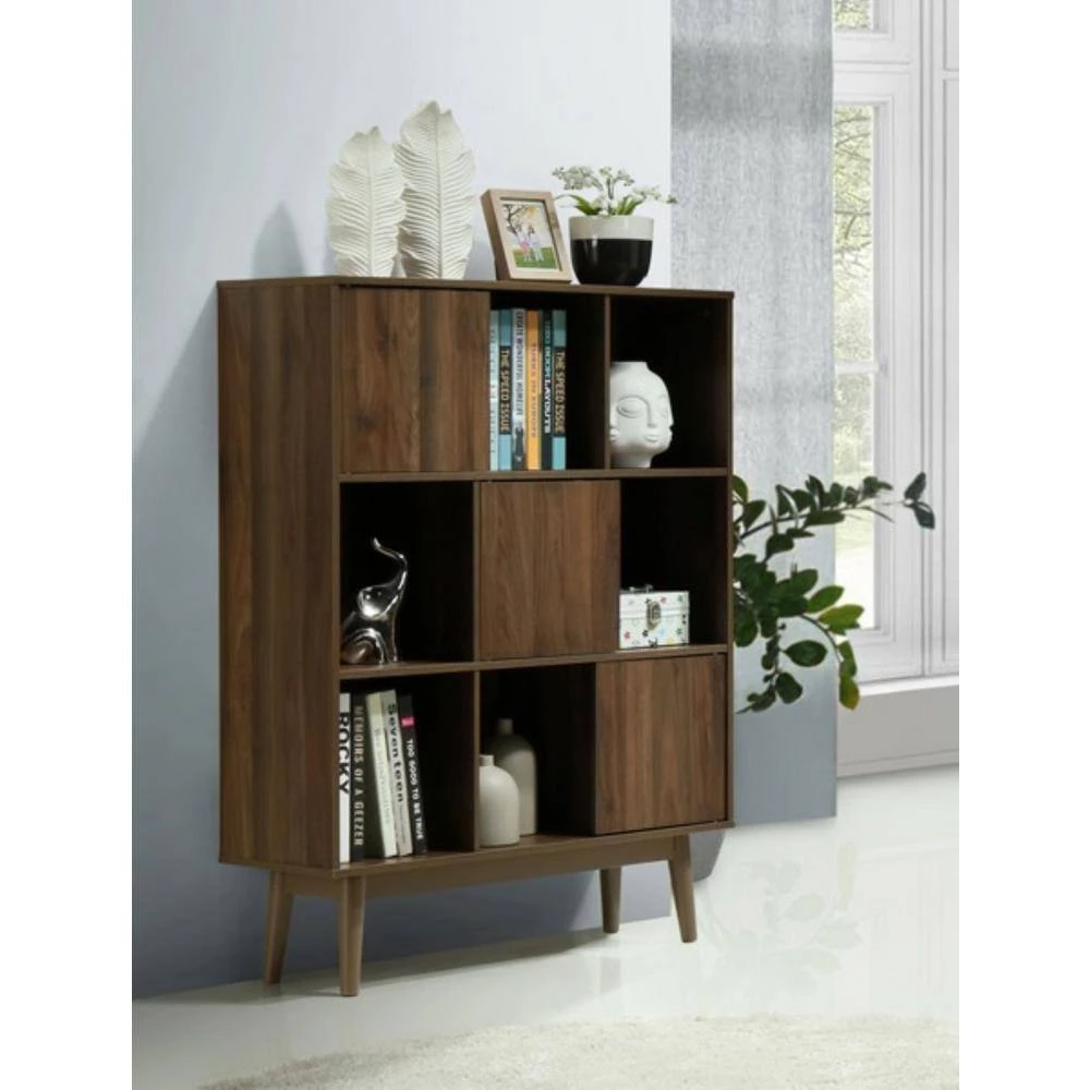 The stylish Monterey Mid-Century Bookcase is an excellent addition to give any room that added elegance. Where Mid-Century meets Modern, this finely crafted product combines glamour and comfort, at an affordable price. Accented with brushed metal handles, the bookcase features six shelves and 3-doors. The uniquely designed tapered legs are made of solid wood. Constructed of Engineered wood and a durable laminate, this easy to clean item is a great choice to fulfill your storage needs. Clean with a dry non-abrasive cloth. Comes ready to assemble with the necessary hardware and step-by-step instructions.
