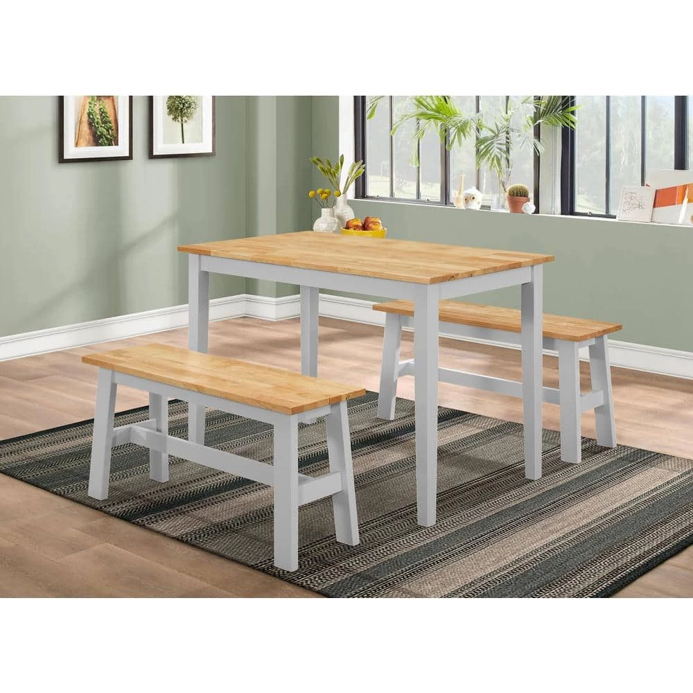 The New York table and 2 benches can update the look of your breakfast nook or casual dining space. The combination of the gray and natural table and bench top is a refreshing design. The bench’s and table are constructed of rubber wood and MDF with veneers. The low-profile design of the two benches allow them to easily slide beneath the matching table to keep them out of the way when not in use, making the set perfect for use in smaller homes, apartments and dorm rooms. It requires some assembly before it can be installed in your home. This lovely table and benches can be wiped clean with a soft dry cloth. This helps keep them looking as good as new for years to come.