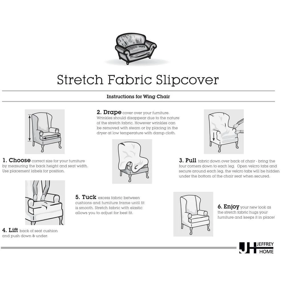 - Stretch fit product. Fits most wing chairs up to 42 high. Best suited for t-cushion chairs.