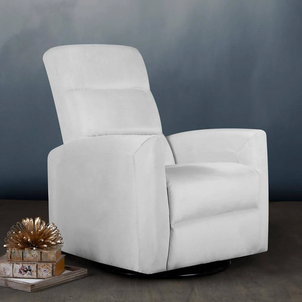 A must-have chair for new parents, the Evolur Reevo Glider with Massager chair is packed with features that make it the perfect choice for easy nighttime feeding and cuddling. With a solid frame, this recliner boasts of an in-built massager with 8 massage modes, 4-point vibration in the backrest, and 5 adjustable intensity levels! What’s more, it comes with smooth 240° swivel & rocking motions. The Reevo Glider with Massager is genuinely crafted for comfort with upholstered, plush seating and a sturdy base. With your convenience in mind, this glider chair is also easy to assemble and comes in a fabric that allows you to effortlessly wipe it clean with a wet towel! The Reevo Glider with Massager is elegantly designed to fit into your nursery nook in 2 modern & minimalistic finishes – Grey and White. The glider has a weight capacity of approx. 240 lbs.