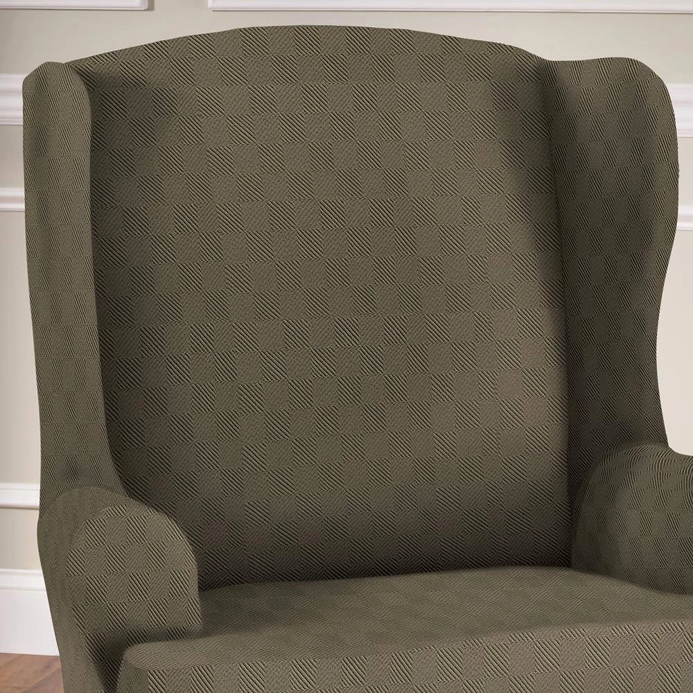 Stretch slipcovers are the perfect way to renew, restyle and refresh your furniture. On and off in a flash. 5-minute instant makeover. More economical than reupholstering. Quick room transformation. Stretch fit product. Fits most wing chairs up to 42 high. Seat width of 23 in. (left to right) with a seat depth of 24 in. (front to back).