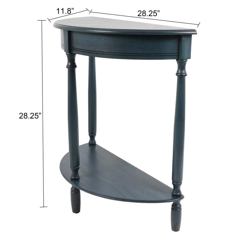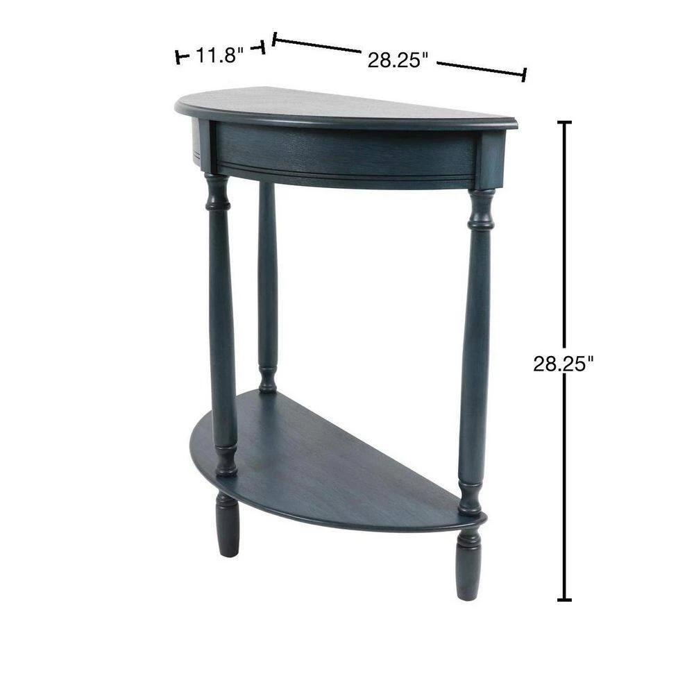 Timeless design, paired with the storage capabilities and a small footprint make the Simplify Half Round Accent Table the quintessential side table. Use this accent table to create a stylish and functional entryway, by hanging a mirror above it and placing a basket on top to catch keys. Or top it with a table lamp and home decor accent piece to dress a blank wall in the living room. The lower shelf doubles your storage capability, while the half circle design hugs the wall and maximizes floor space. Clean lines lend a modern feel, while the turned legs add a traditional element, creating a transitional look that will last for years. Available in a variety of finishes so you can pick the color that best suits your space. The MDF construction creates long lasting durability. Easy to assemble. Table measures 28.5 in. x 11.8 in. x 28.25 in.