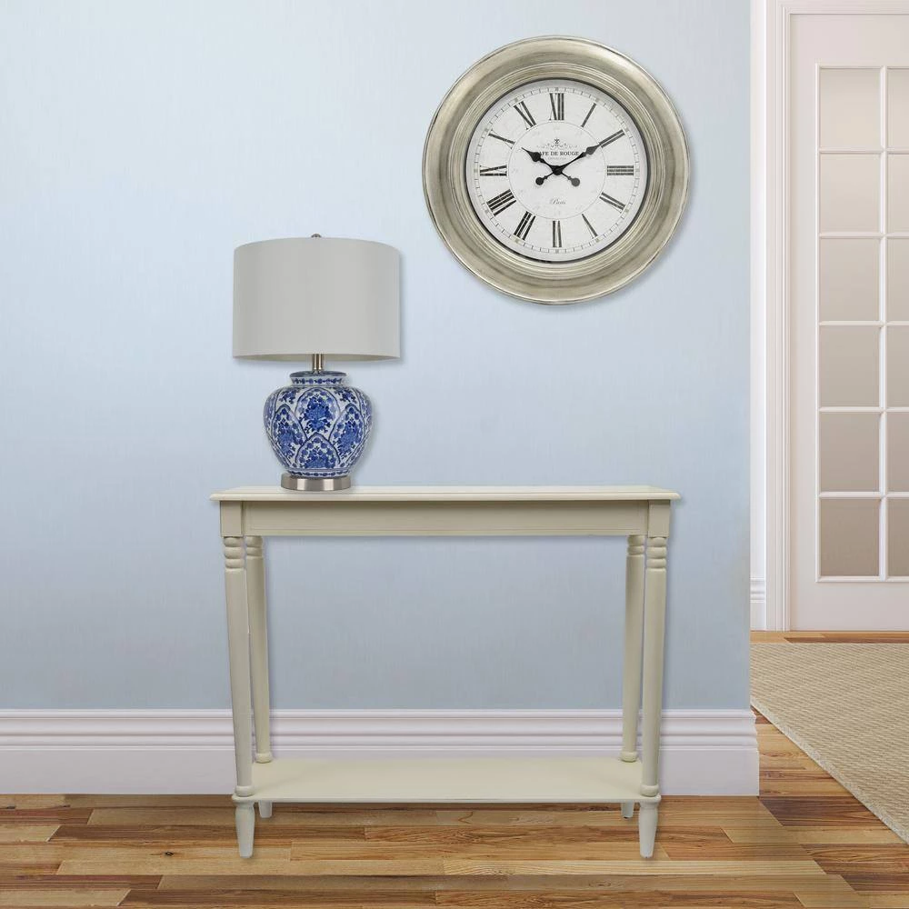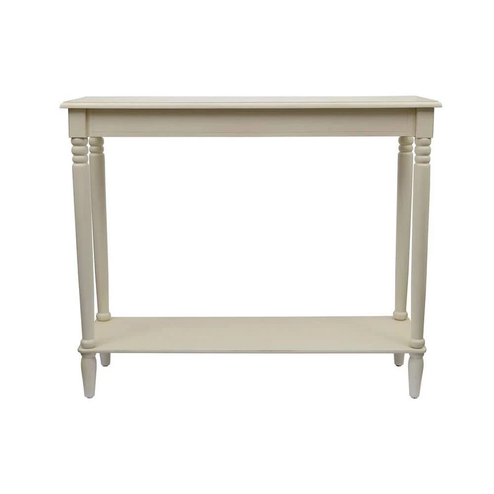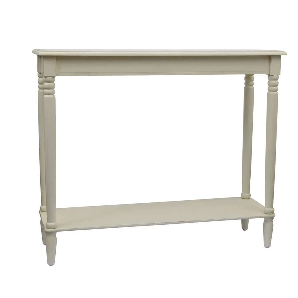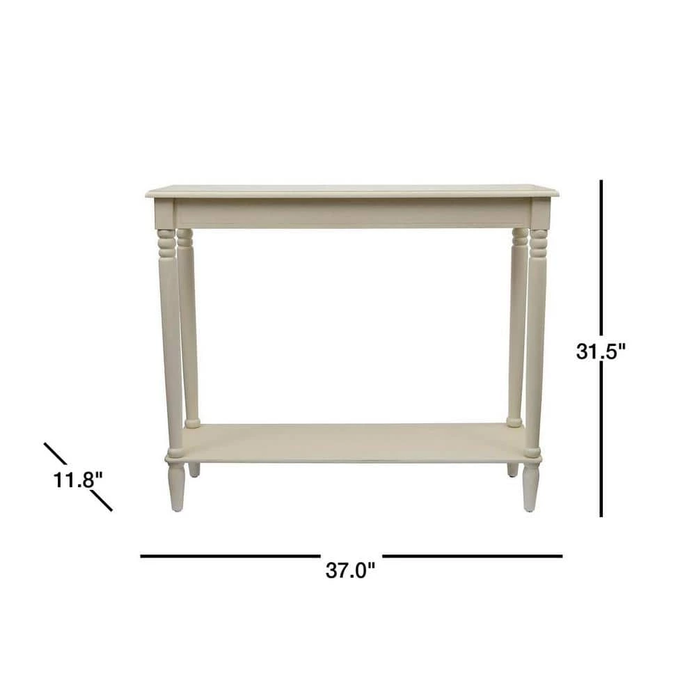 This rectangular Console Table is simple yet elegant. Turned legs will give this accent table a timeless, traditional and grand feel. Place it under a mirror in your entry way, use it in the dining room to provide extra serving space or display a collectible. The lower shelf is ideal for showcasing baskets or books. Constructed of solids and MDF for a long lasting, durable piece. Easy to assemble. Table measures 37.7 in. x 11.8 in. x 31.5 in. Available in antique white, antique teal, and eased edge gray.