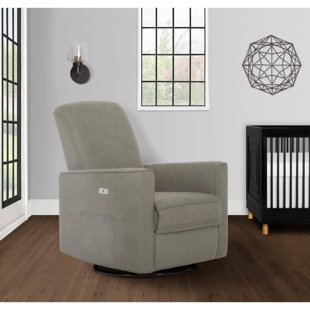 Sit down, Sink in and feel at home with Evolur Harlow Glider Evolur Deluxe Glider is designed with ultimate comfort in mind, the Harlow 275° Swivel Glider and Recliner offers soft, plush seating, smooth rocking and gliding motions, and offers a easy to reach power reclining mechanism with different positions. This recliner also comes with a built in USB charger port, which enable you to have all electronics conveniently on hand. This glider is a perfect addition to any nursery for story time, late night feeding or just snuggling with your baby. This versatile glider will fit perfectly in any living spaces where you may want another relaxing spot. Add warmth, comfort and modern Chic to any room with Evolur Harlow Glider.