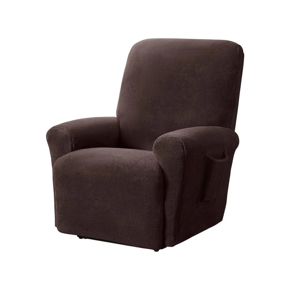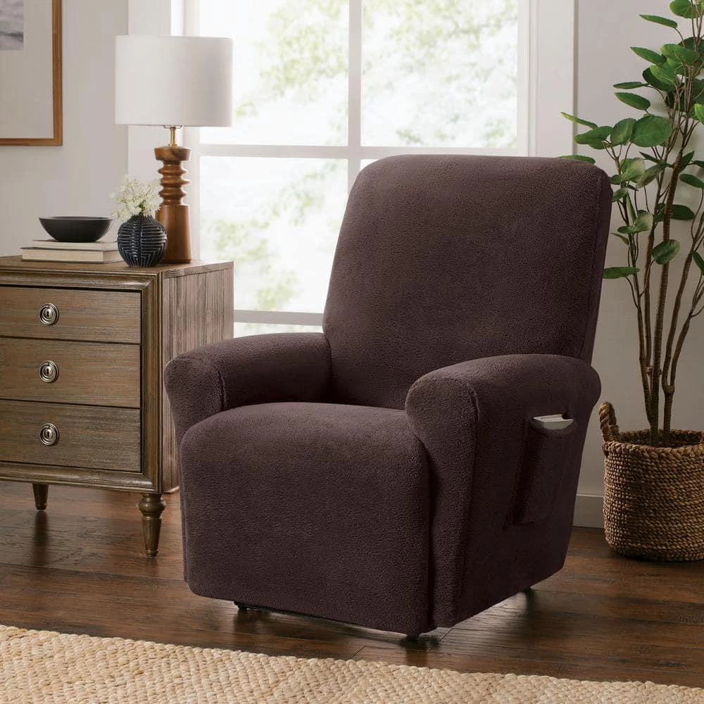 Stretch Sensations stretch Sherpa slipcover is soft and plush. This stretch slipcover will update and refresh any furniture and room. On and off in a flash. This slipcover is full coverage, any excess fabric just needs to be tucked into the seams of the furniture. Left side pocket to hold remote or tablet. Circle cut out to fit manual recliner lever. Comes in 4 pieces that makes it easy to install. 1) right arm cover. 2) left arm cover. 3) back cover. 4) seat and foot rest cover. Machine Washable.
