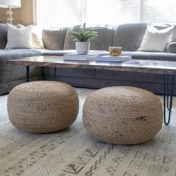 Lola Lurex Off-White Round Pouffe by Decor Therapy