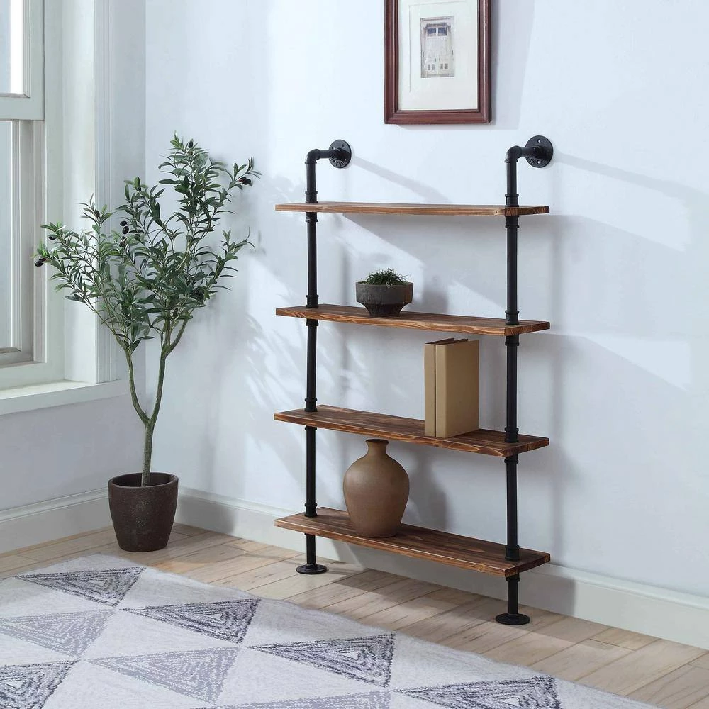 The Turner Collection Shelf Piping Unit is a great way to add organization to your space with an open shelving concept. The rustic wood shelf provides the classic rustic look making it a great addition into any room. The piping can easily be fastened to the wall or you can use the feet to set it on the floor. This is a great approach to shelving allowing you to place it anywhere in your interior space. Clean with dry non-abrasive cloth. This unit comes ready to ship with step-by-step instructions and the necessary hardware.
