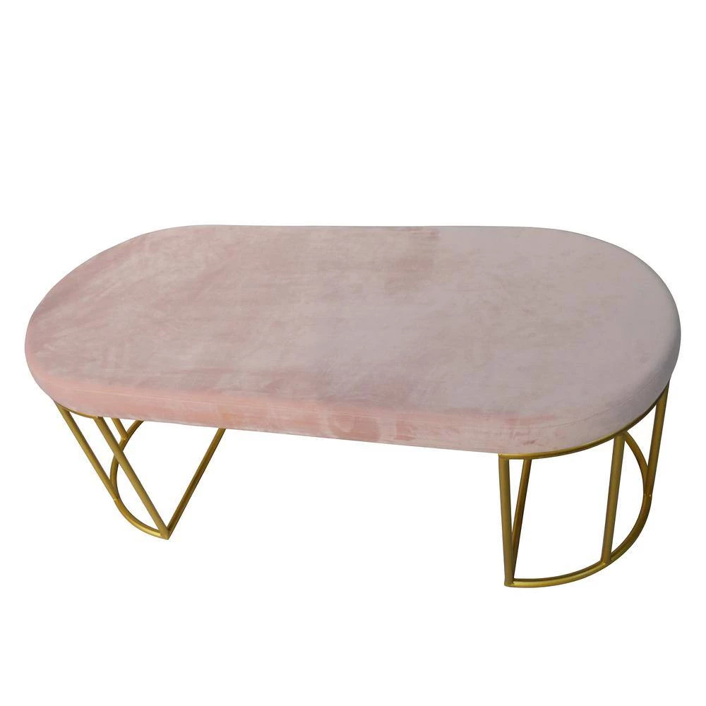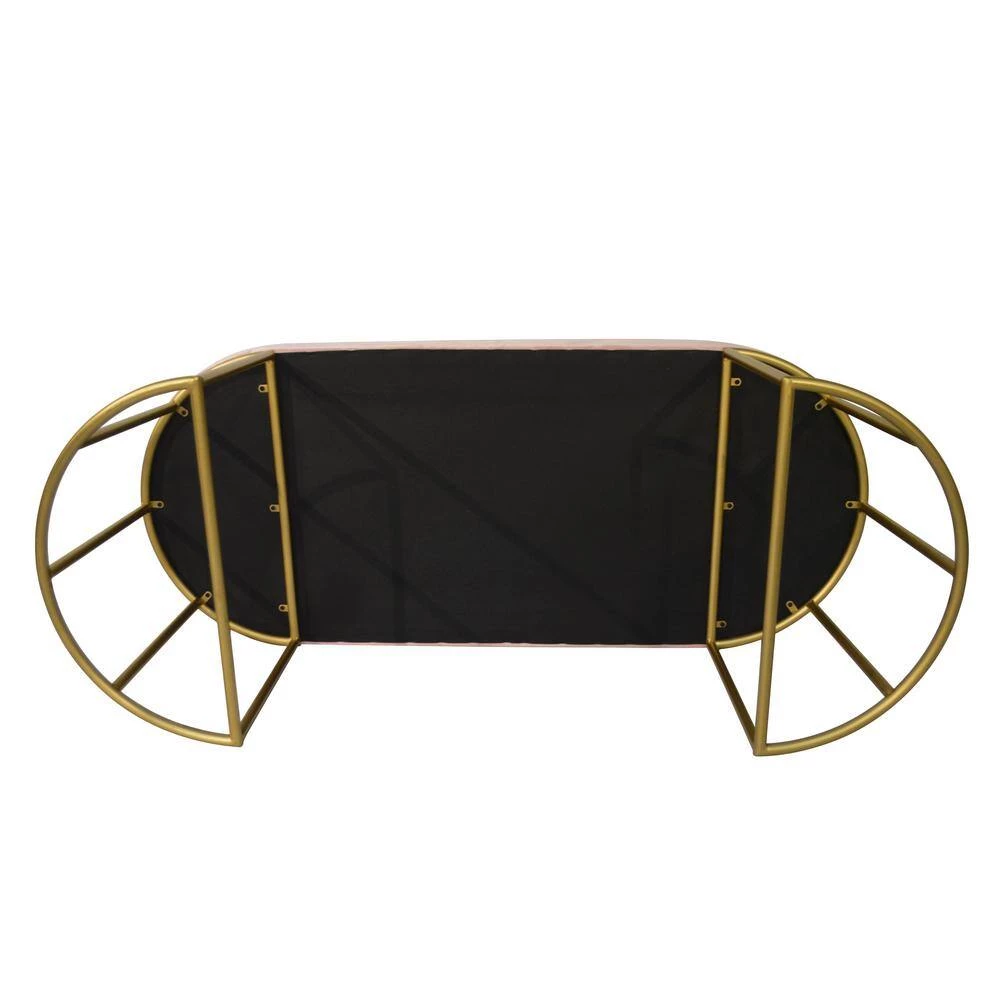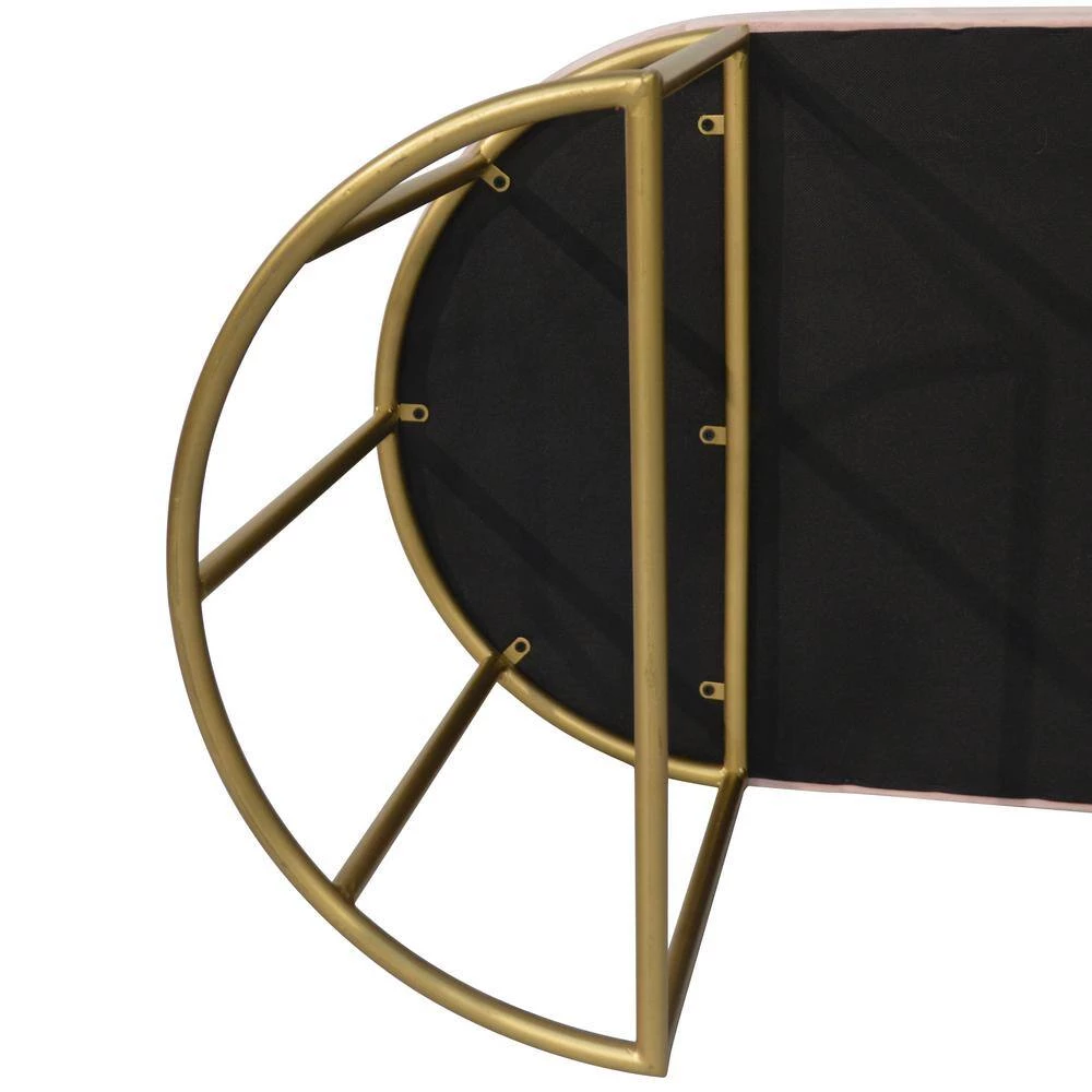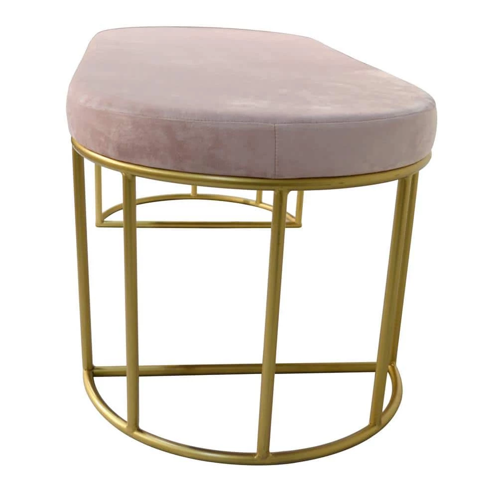 Show off your glamorous side with the Vera Metal and Velvet Accent Bench gracing your most occupied living spaces. Plush, pink velvet wraps the seat of this accent bench for extreme comfort. The sturdy, barreled-style legs are finished in a glimmering gold and positioned in an half-round shape to complete this contemporary design. When you update your vanity area or entryway with the Vera, your days of preparing for date night or long work days become one of the pleasurable highlights of your week. You can also place it in a bay window with fluffy throw pillows to enhance your decor. Constructed of MDF, foam, metal and velvet and measures: 18.11 in. H X 47.24 in. W x 20 in. D.